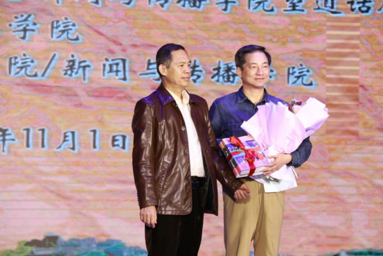 11月1日晚,广西师范大学文学院/新闻与传播学院望道话剧社经典话剧作品《秋声赋》在我校弘善讲堂上演。校领导杨树喆、邓志平出席活动,与我校师生代表等500余人共同观看了精彩演出。
