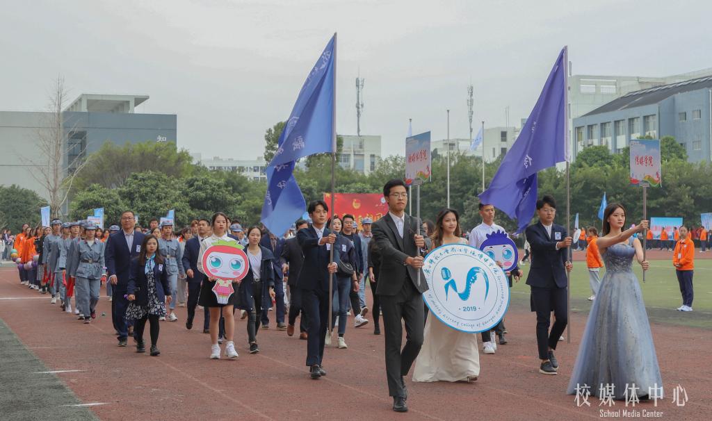 11月5日上午,我校首届校园体育文化节暨第十八届田径运动会开幕,田径场上掌声雷动、热闹非凡。在开幕式上,各方队、各代表队身着盛装、精神抖擞,步伐铿锵,伴着慷慨激扬的《运动员进行曲》依次进入运动场,并分别带来了精彩的表演,赢得了现场观众阵阵掌声和欢呼声。