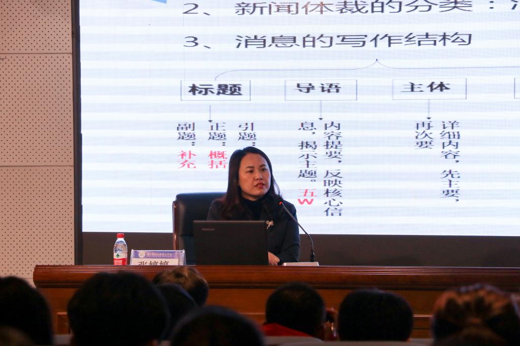 图:广西师范大学党委宣传部副部长张婷婷作“高校新闻策划与媒体沟通”专题报告