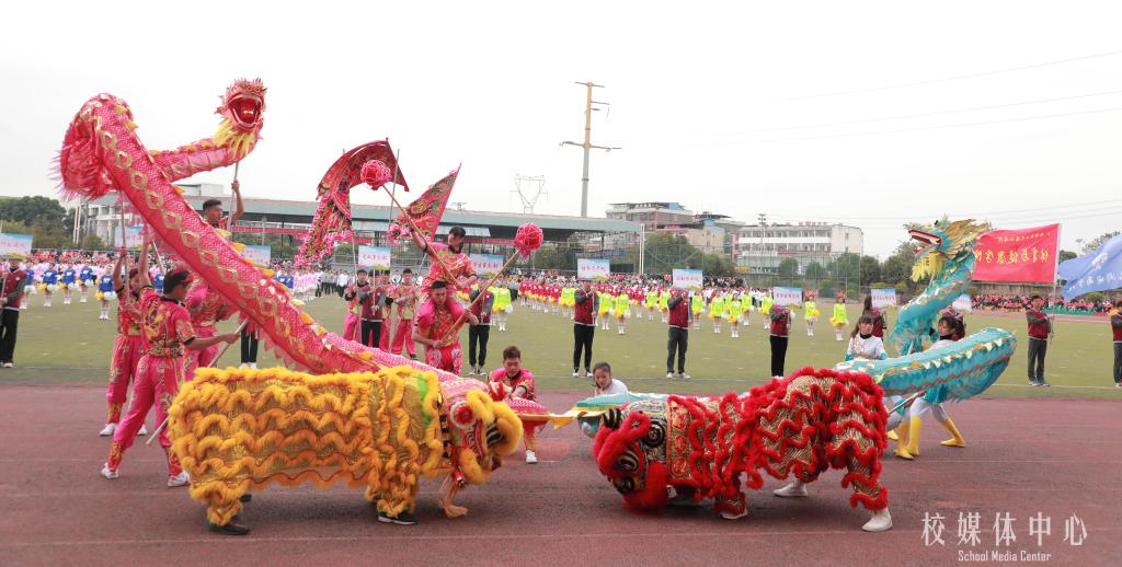 在精彩的舞龙舞狮表演后,举行了升旗仪式,伴随着国歌,五星红旗冉冉升起,全体师生庄严肃立。