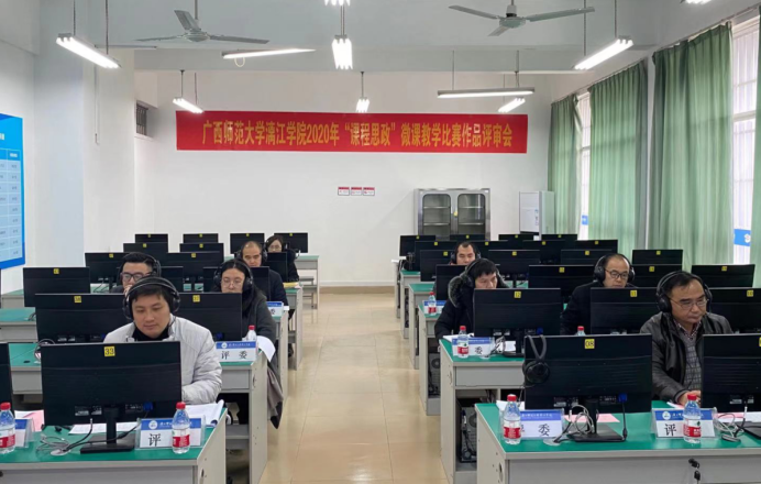 为进一步贯彻落实教育部《高等学校课程思政建设指导纲要》和自治区教育厅《全面推进广西高等学校课程思政建设的实施意见》文件精神和要求,深化学校“课程思政”教育教学建设工作,推进现代信息技术在课程思政教学中的应用,倡导自主、合作、探究的新型学习方式,鼓励采用“微课”“微视频”等创新教学模式,促进信息技术与课程思政教育教学深度融合。12月10日上午,学校在崇善楼2412机房举行了本年度的“课程思政”微课教学比赛评审会,本次课程思政微课大赛共收到各学院提交的作品31份。评审会由教学科研处处长杨杰夫主持。