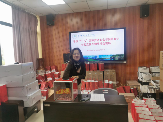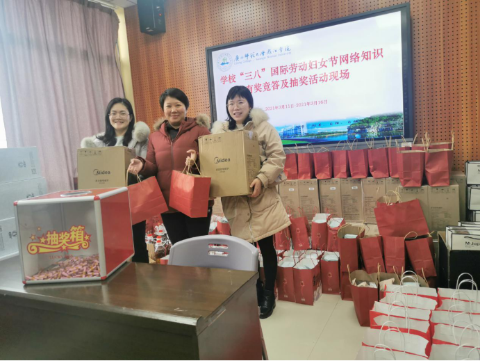 校工会积极做好活动的宣传和动员,合理安排和组织全校女教职工有序地参加活动。在网络答题环节,女教职工通过答题增强了对相关妇女权益知识的学习,进一步了解建校20周年的校史,深刻认识到中国共产党从百年前救亡图存的艰苦奋斗,到百年后今天的瞩目辉煌。在抽奖活动环节,现场气氛活跃非凡,不断传出阵阵喝彩点赞声,女教职工在愉悦的环境中相互交流、互通有无,展现积极向上的精神风貌。