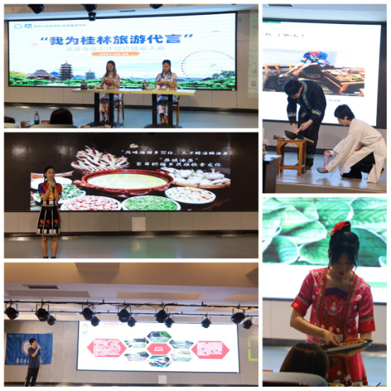 6月28日,我校商贸与法律学院/名淘电商学院成功举办“我为桂林代言”旅游电商人才综合技能大赛。副校长杨庆庆,桂林大健康和文旅产业研究院、桂林理工大学梁福兴教授,桂林市导游协会会长余芳,桂林融创文旅城酒店集群人事总监胡娜出席了比赛现场。校团委、商贸与法律学院负责人,旅游教研室、电子商务教研室师生代表参加了大赛。商贸与法律学院/名淘电商学院、语言文学学院、经济管理学院、设计学院等相关专业学生的共同组成的11支队伍进行了同场竞技。