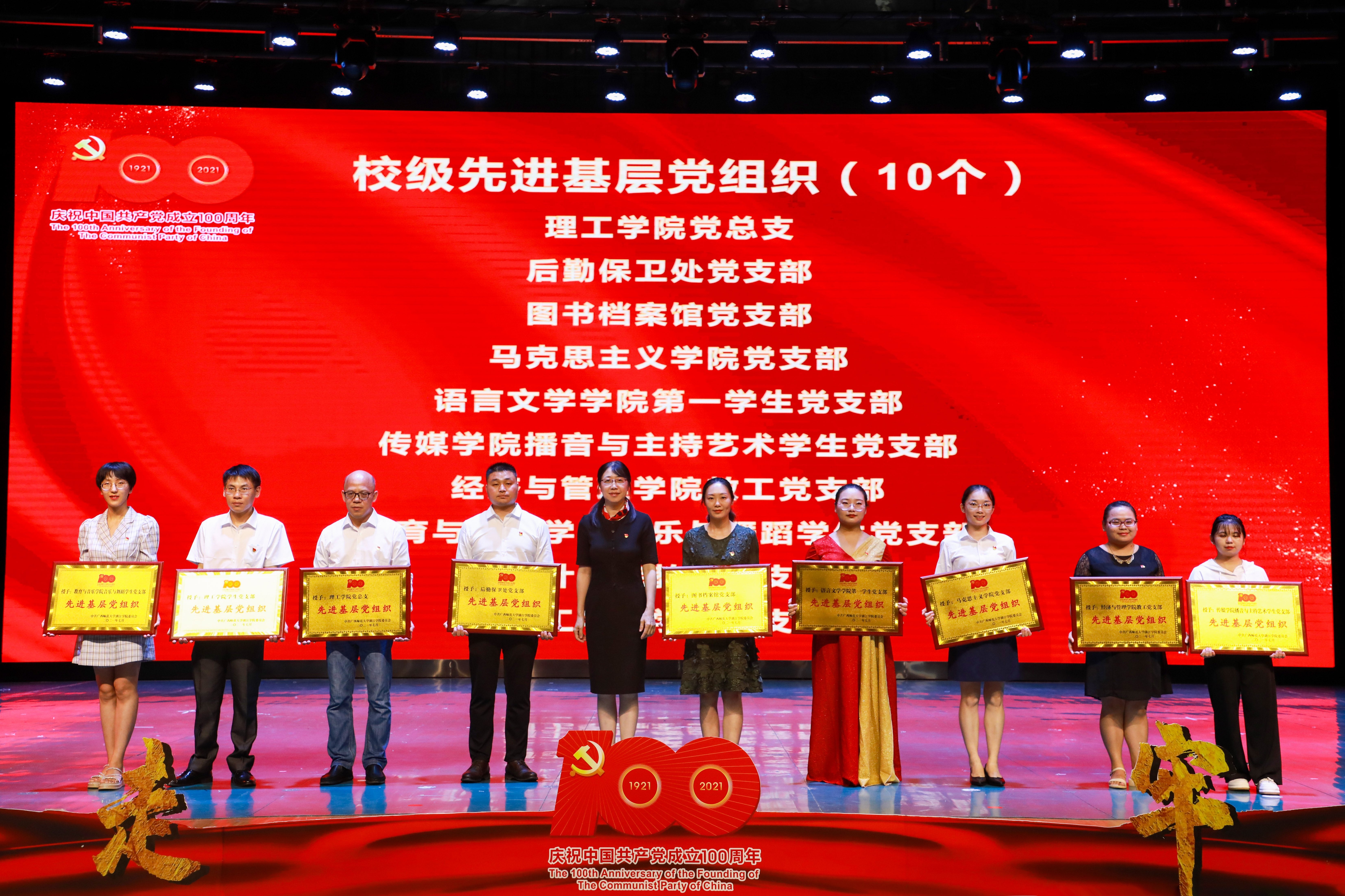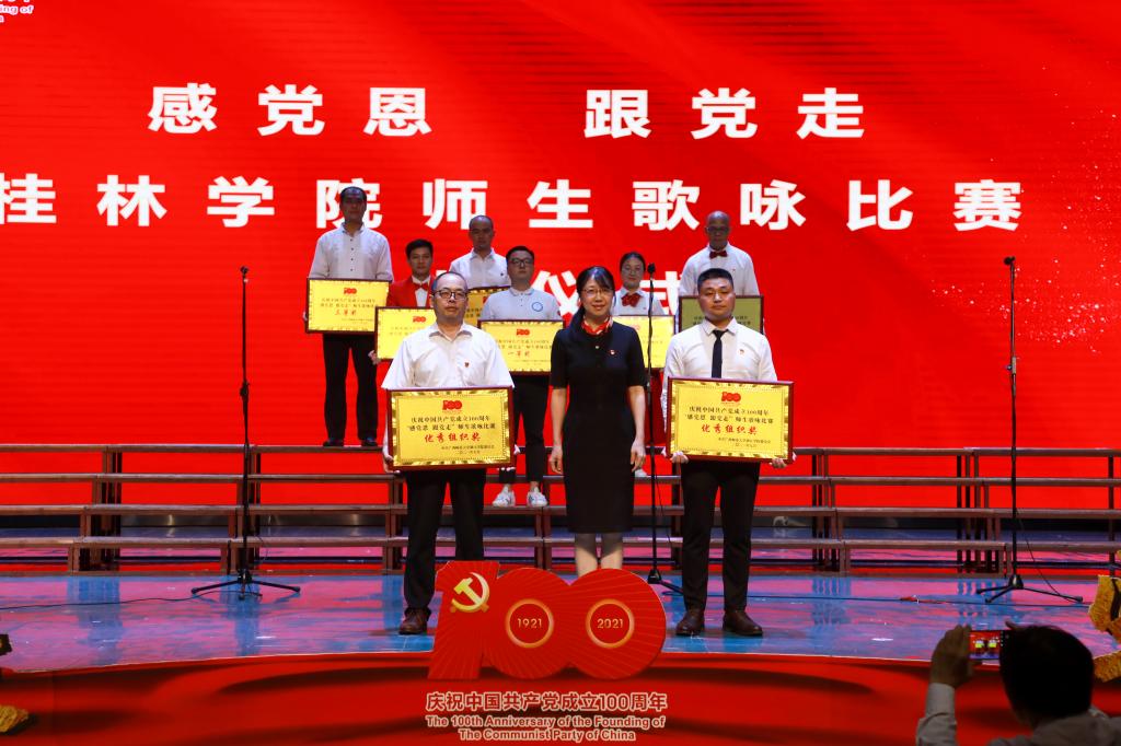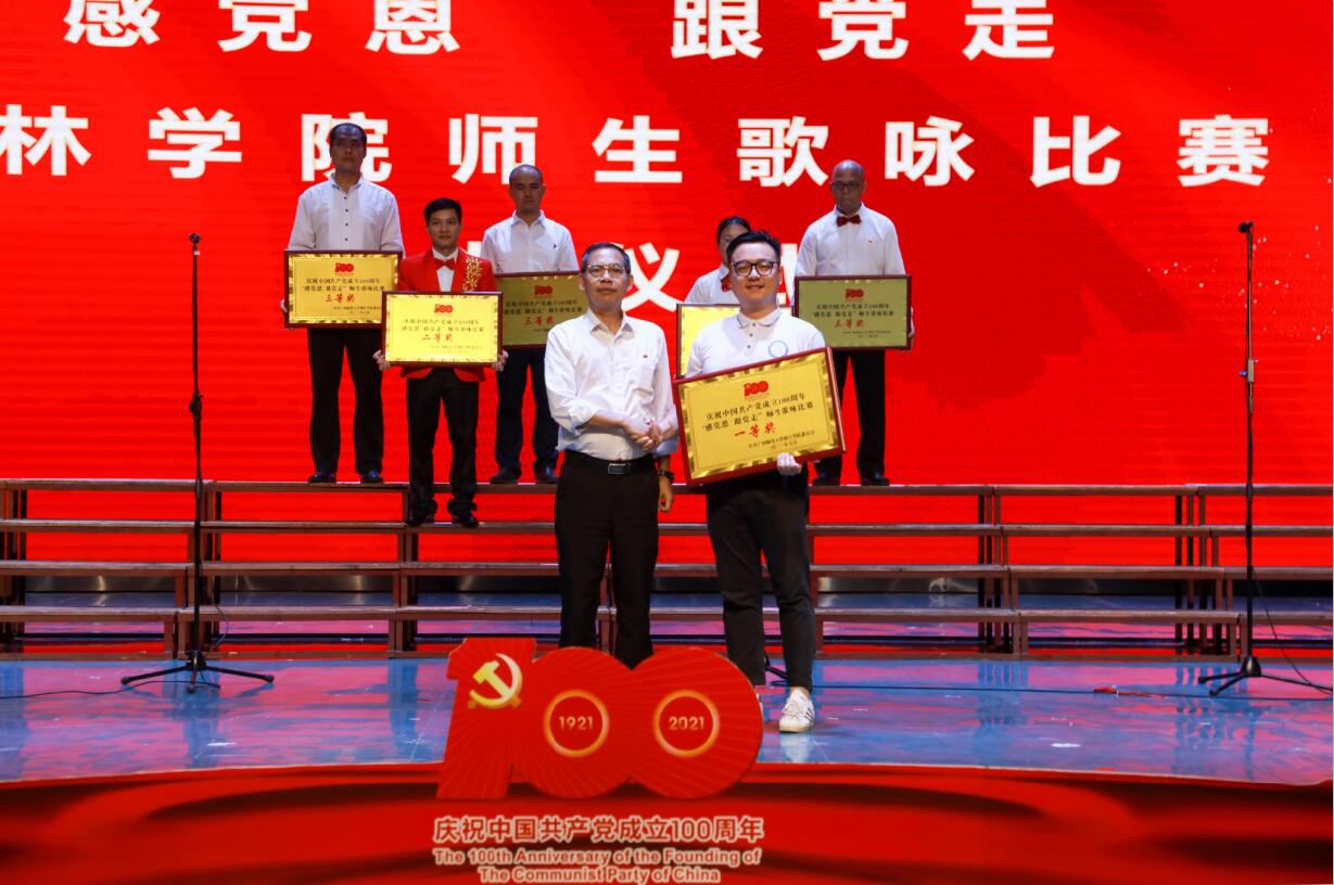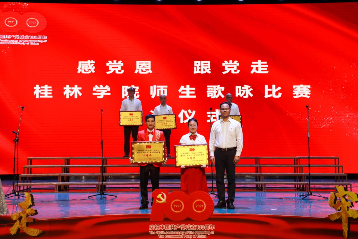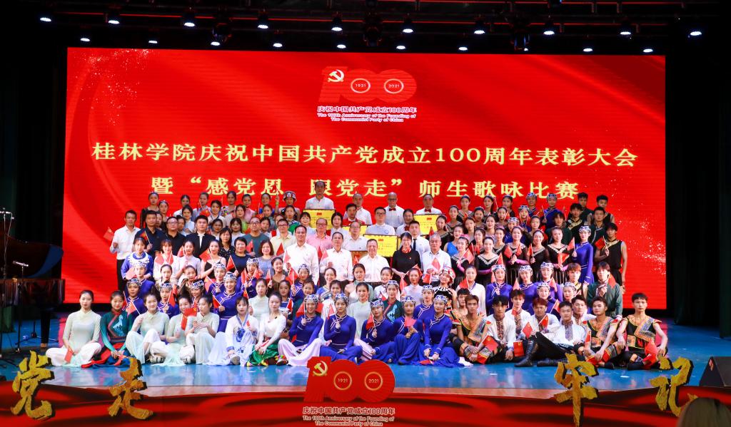 6月29日晚,我校在弘善讲堂隆重举行庆祝中国共产党成立100周年表彰大会暨“感党恩 跟党走”师生歌咏比赛。学校董事长周道林,校领导唐文红、杨树喆、邓志平、祝芸芸、刘文革、杨庆庆出席活动。学校党委委员、各党总支书记、各学院院长、全体党支部书记、各职能部门负责人、桂林新城投资开发集团有限公司相关部门的领导及师生代表500余人参加了此次活动。表彰大会由校党委副书记、纪委书记、副校长邓志平主持。