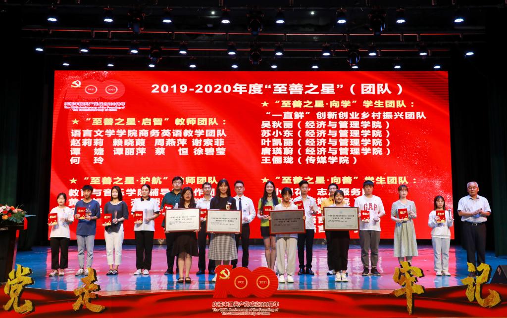 副校长祝芸芸宣读关于表彰我校2019-2020年度“至善之星”团队和个人的决定。副校长刘文革为2019-2020年度“至善之星”个人和团队颁奖。