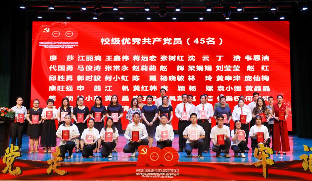 校党委书记唐文红、校长杨树喆、副校长杨庆庆分别为先进基层党组织、优秀党务工作者、优秀共产党员颁奖