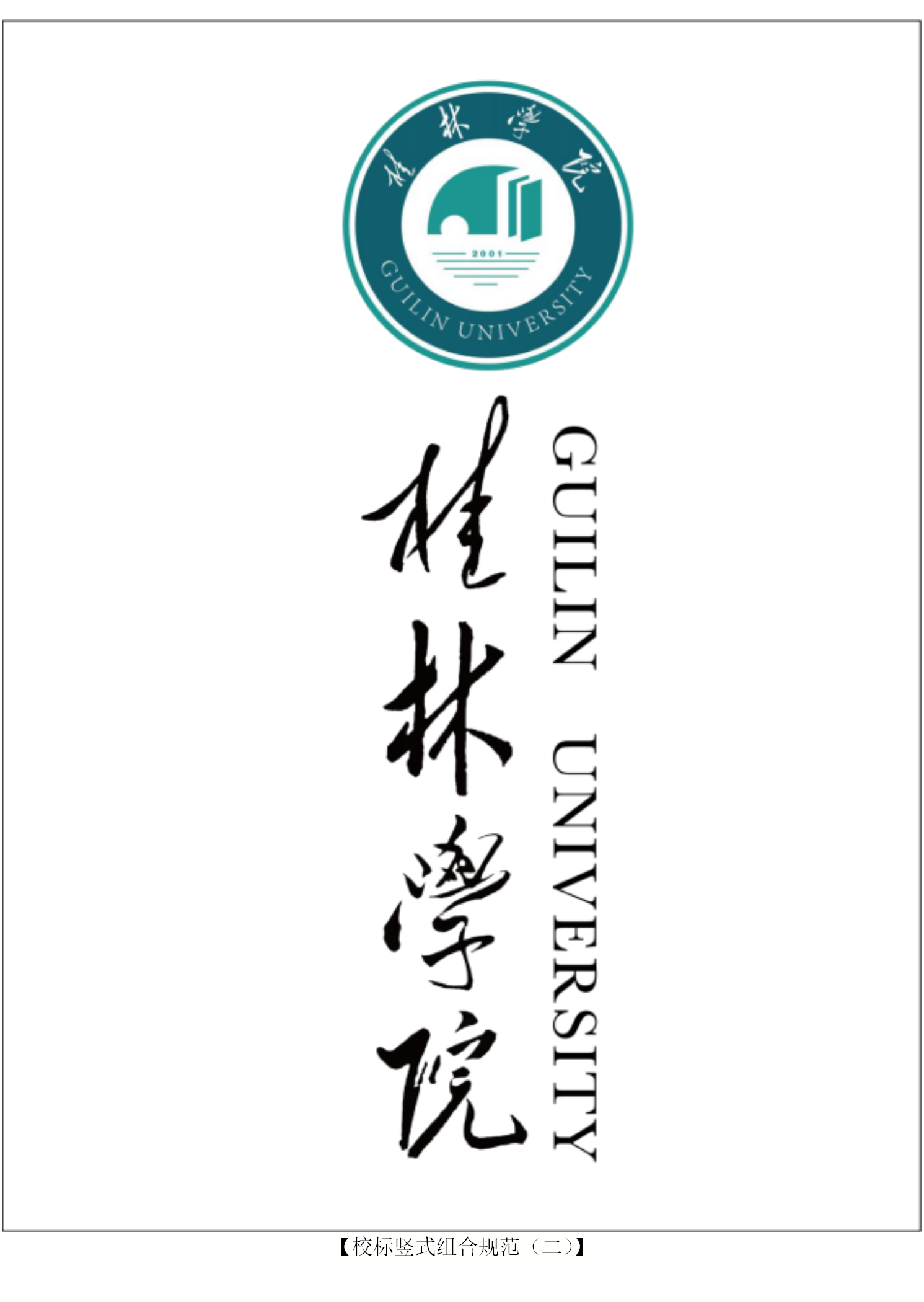 新公布的桂林学院视觉形象标识包括校标及其设计说明、各种校标款式、校徽及其设计说明、各种校徽款式4大部分,具体如下: