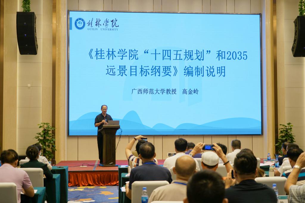 “十四五”规划编制团队总负责人、广西师范大学教授高金岭就《桂林学院“十四五”规划和2035年远景目标纲要(草案)》编制情况进行说明