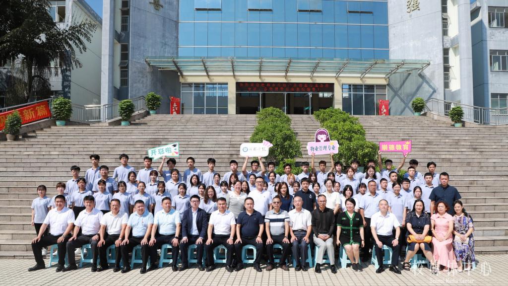 校领导、桂林崇德教育咨询有限公司领导与物业管理专业首届新生合影