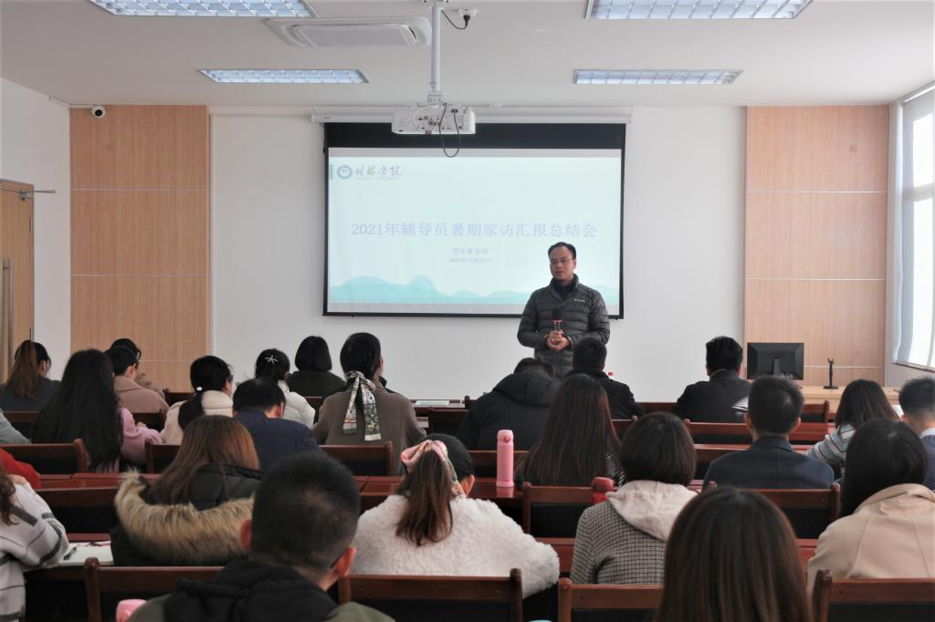 学生事务部相关负责人对2021年辅导员暑期家访活动进行总结。各二级学院辅导员代表结合PPT,讲述了他们在家访过程中的工作经验与方法,并与大家分享了收获与感悟,同时详实报告实地家访的具体情况,深入剖析学生现状与家庭成长环境间的关系,并总结辅导员暑期家访的重要意义及家访应注意的事项。