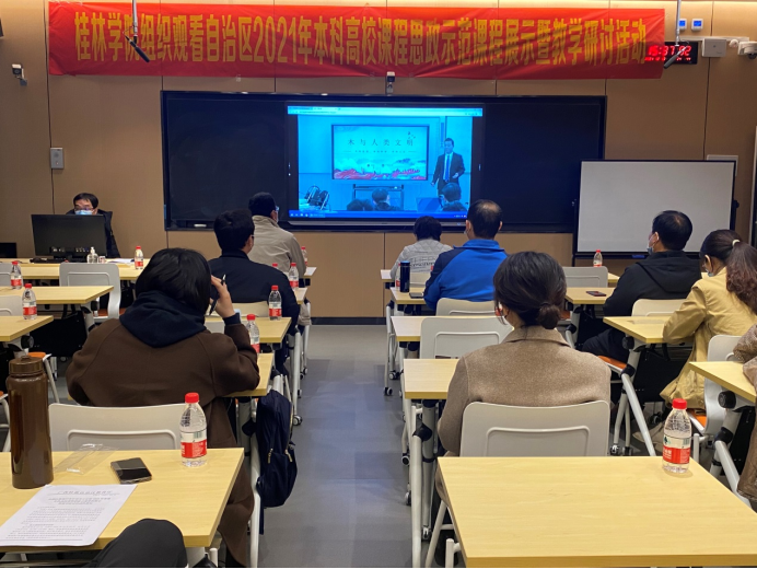 根据安排,本次活动展示课程共12门,课程思政示范课展示与教学研讨两个环节。在示范课展示中,流程分为教师示范、观摩人员与教师互动、专家点评三个部分。我校现场集体选看了2门课程,分别是广西大学高伟老师讲授了《木与人类文明》,他用具有感染力的语言结合历史用到木头的案例进行讲解,教学过程中帮助学生树立有理想信念、有道德情操、有扎实学识、有仁爱之心的教师观。梧州学院宋银秋老师讲授了《高级英语2》,她在“寓教于乐”“潜移默化”的教学中将知识传授与价值观认知完美地融于英语教学中。在教学研讨环节,点评嘉宾对教师的示范课进行了点评。他们认为教师在教学过程中巧妙地融入了课程思政元素,充分地将专业课程教学融入家国情怀、文化自信、人文精神、仁爱之心等要素,实现了知识传授与价值引领的统一、显性教育与隐性教育的统一、教书与育人的统一,充分体现了他们对课程思政的深度思考。