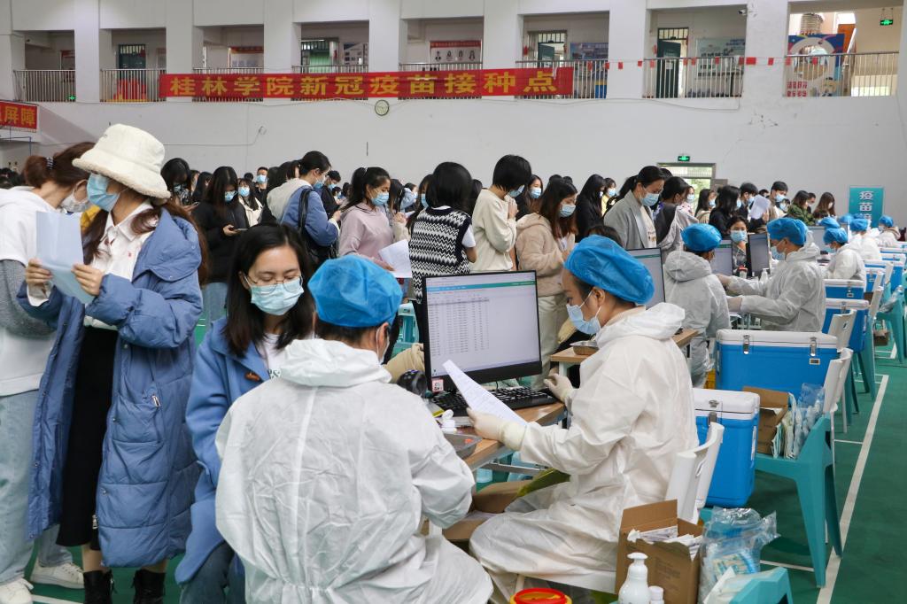 为进一步巩固校园免疫屏障,确保师生身体健康和生命安全,根据自治区及桂林市有关工作部署,我校于12月15日在彰善楼室内体育场组织开展了全校师生新冠疫苗加强针集中接种工作,共计7146名满足接种条件的师生及校内从业人员完成接种。