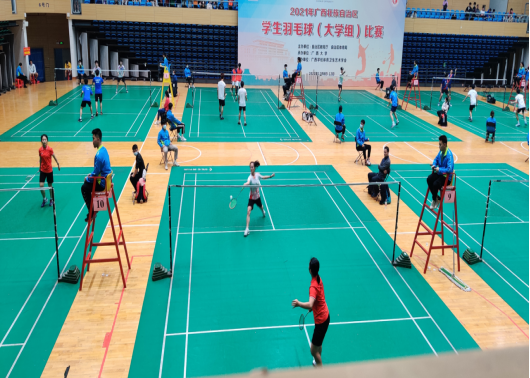 图:2021年广西学生羽毛球(大学组)比赛现场