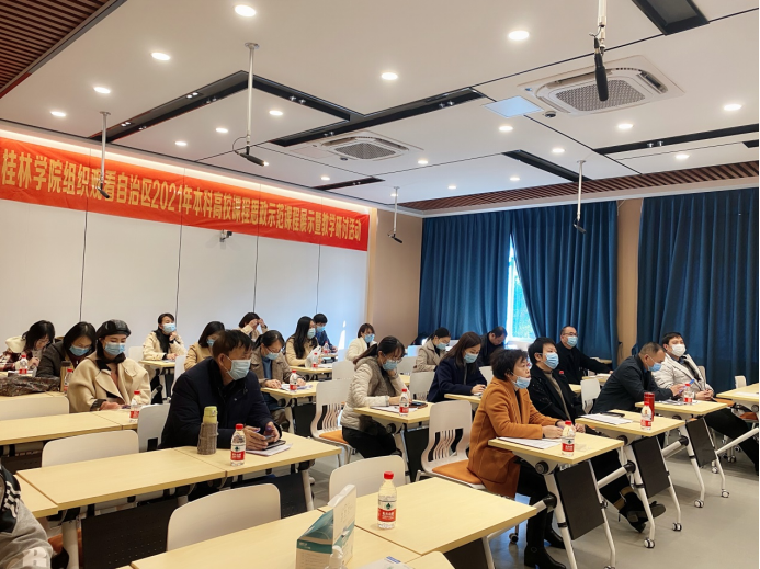 根据安排,活动流程分为教师示范、教师互动、专家点评三个部分。我校现场集体选看了2门课程,分别是广西师范大学徐晨帆老师讲授的《动漫衍生品设计》,他通过典型生动的案例引导学生,努力启发学生的学习兴趣,使学生感悟到价值的力量。桂林理工大学何德珍老师讲授的《广告学概论》,她不是把一些理论生搬硬套到课程中去,而是注重跟学生的互动,在层层推进的问题分析中,做到自然流露、以情动人、潜移默化。在教学研讨环节,听取了点评嘉宾对教师的示范课点评,他们对展示课教师在“课程思政”教育教学改革取得的成效和精彩表现给予了充分肯定,同时希望广大教师能抓好课堂教学主阵地,进一步探索教学新模式、新方法、新路径,彰显教学特色。