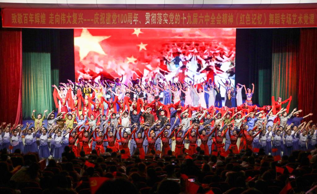 我校举行以“致敬百年辉煌 走向伟大复兴——庆祝建党100周年、贯彻落实党的十九届六中全会精神”为主题的《红色记忆》舞蹈专场主题艺术党课