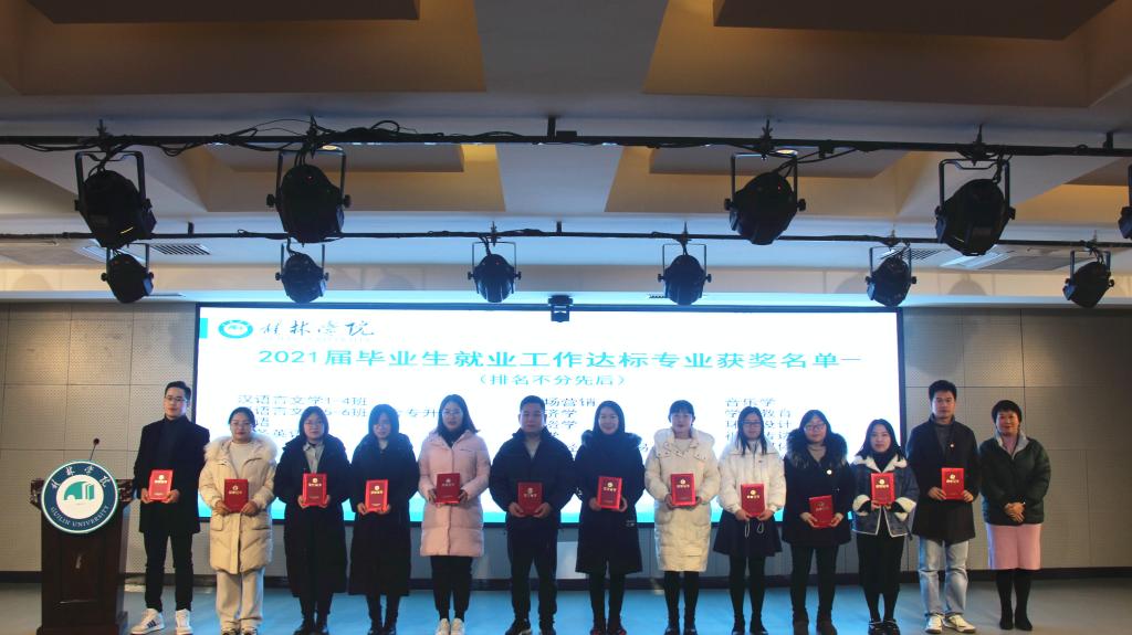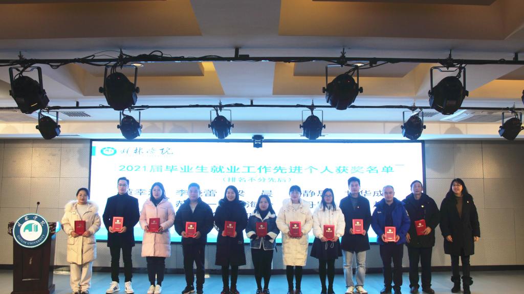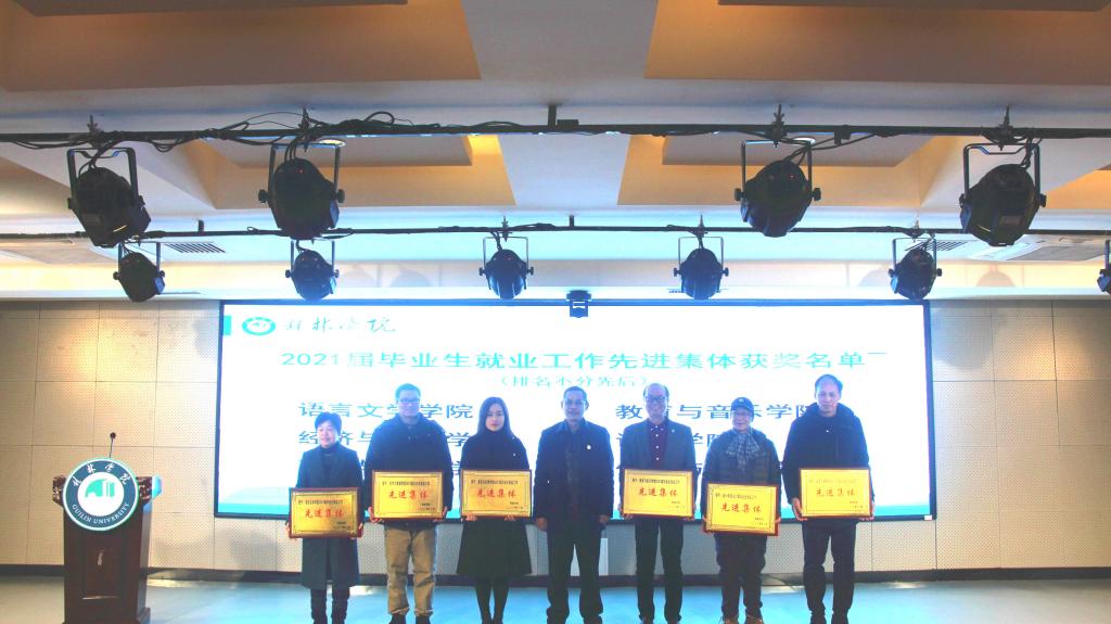 会上,杨庆庆宣读了学校对2021届毕业生就业工作先进集体、先进个人及达标专业班级的表彰决定。语言文学学院、经济与管理学院、商贸与法律学院、教育与音乐学院、体育与健康学院、设计学院等6个单位荣获先进集体称号,汉语言文学1-4班等26个班级荣获达标专业班级称号,黄幸津等14位同志荣获先进个人称号。校长助理、语言文学学院院长何玲,经济与管理学院院长彭润华,商贸与法律学院党总支书记陈俊杰分别作经验交流发言。出席会议的校领导为荣获先进集体、先进个人和达标专业班级称号的单位、个人和班级颁奖。