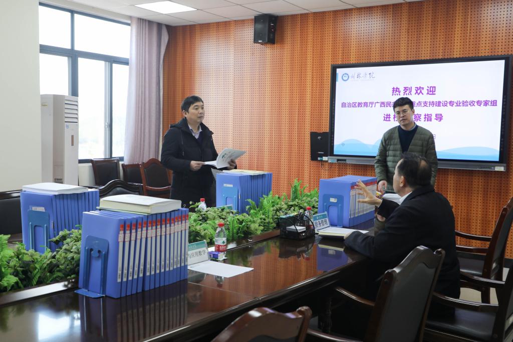1月11日下午,以自治区政府督学陈杰教授为组长的广西民办高校重点支持建设专业验收工作专家组一行莅临我校,对我校财务管理、数学与应用数学、金融学、法学等四个广西民办高校重点支持建设专业(以下简称“重点专业”)进行现场验收。校长杨树喆、副校长杨庆庆,上述重点专业负责人及所在二级学院院长、人力资源部、学生事务部、财务资产处、后勤保卫处、实验教学与网络信息中心、图书馆、教学科研处主要负责人师生代表参加了当天的验收工作。杨树喆在验收汇报会上致欢迎辞。