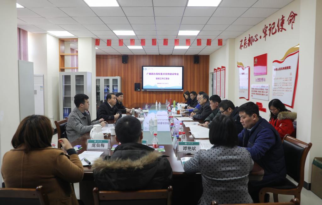 杨庆庆代表学校从人才培养方案、师资队伍建设、教学经费投入、质量保障体系等四个方面汇报了四个重点专业建设总体情况。各专业负责人分别从专业建设目标、下拨资金及配套资金使用、项目实施成效、问题或建议等方面进行具体总结汇报。自2018年立项建设以来,坚持以应用型人才培养为主线,从培养方案、师资队伍、课程体系、教学条件和培养质量等层面加强建设。立项建设期间,四个重点专业共引进新教师21人,共有14人晋升为副教授职称,副教授职称总体占比例位居学校各专业前列;建成相关实验实训室8间并投入使用,极大的改善了教学基本条件,有效的保障了应用型人才培养目标的达成;财务管理、数学与应用数学、金融学等3个专业入选自治区级一流本科专业建设点立项,法学专业入选校级一流专业建设点立项。其中,法学、金融学专业通过校企合作开展“法律实务知行班”“金融实务班”,率先启动校级“拔尖-至善”卓越人才培养计划,探索并实践高素质应用型人才培养模式改革;财务管理专业积极开展“1+X”书证融通教学改革,形成了“产教学赛研创”六位一体的实践教学体系;数学与应用数学专业依托校内实验实训条件,持续开展“以赛促学”,在全国大学生数学建模竞赛中获二等奖,系广西民办高校唯一,学校获得广西赛区优秀组织奖。