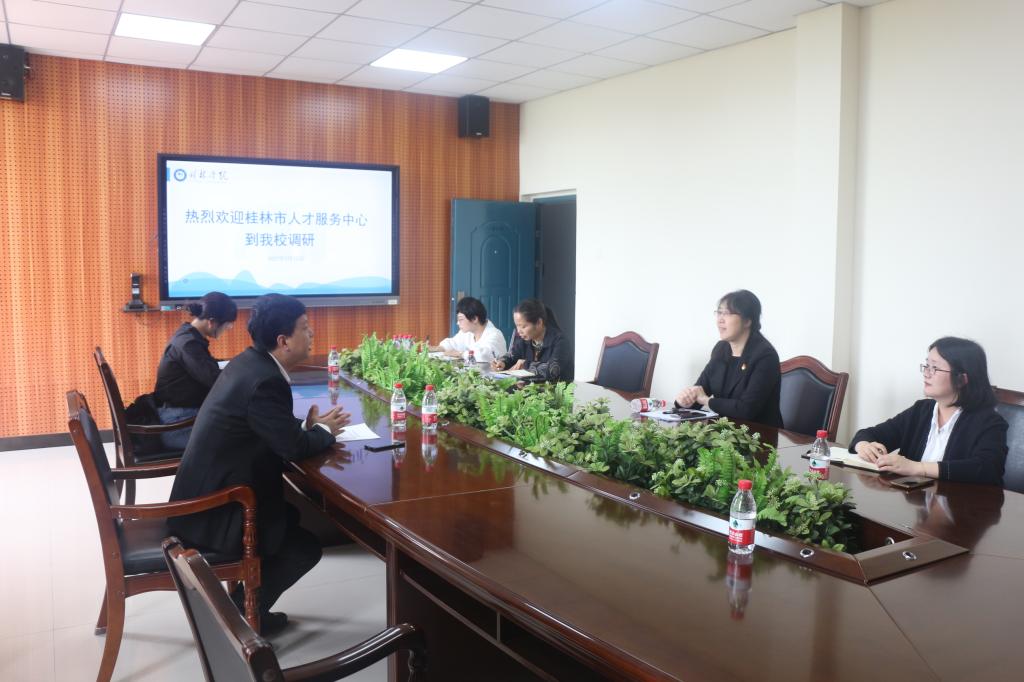 5月13日下午,桂林市人才服务中心副主任唐伟一行到我校走访调研。校党委负责人唐文红,学校人力资源部负责人及就业创业指导中心全体人员参加会议。