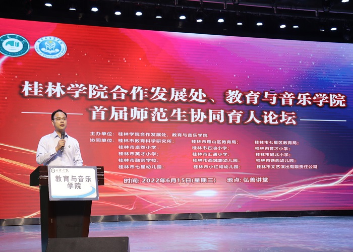 6月15日,由合作发展处与教育与音乐学院主办的师范生协同育人论坛在弘善讲堂隆重举行,学校纪委负责人、副校长邓志平出席并为论坛致辞。邓志平代表学校对参加本次论坛的来宾表示热烈欢迎,他表示,为解决职前培养中“理论讲授多实践指导少”的培养困境,教育与音乐学院一直以教学合作的方式,探索核心素养视域下“高校教师—中小学优秀教师—师范生”的教师培养教育共同体,探索协同育人的培养路径,各相关行业专家的到来,无疑给我校人才培养注入了活力、增添了智慧,希望能开启协同育人的新篇章。