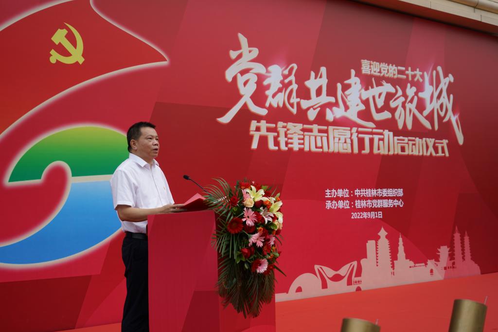 桂林市委常委、组织部部长赵卫东在启动仪式上表示,先锋志愿行动要围绕世界级旅游城市建设,围绕产业振兴、乡村振兴、科教振兴等中心工作来开展,各党员志愿服务队要打头阵、当先锋,充分发挥专业优势,紧密联系基层群众,主动提供高质量服务,为先锋志愿行动在全市广泛开展夯实基础,发现、宣传一批在全市乃至全区立得住、叫得响、传得开的先进志愿服务党组织和优秀党员志愿者,使“党群共建世旅城”先锋志愿行动成为桂林基层党建工作的新品牌、新亮点。活动分别为理论宣讲、文明旅游、漓江保护等党员志愿服务队授旗,为灵川县、阳朔县及六城区的党员志愿者服务分站授牌。