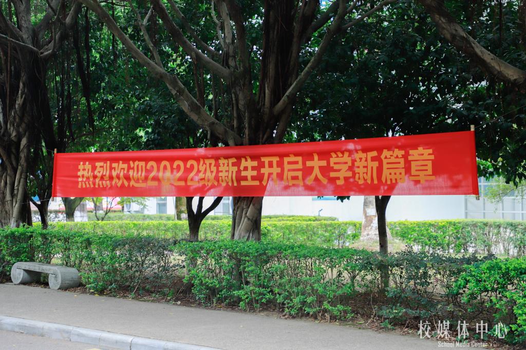 为迎接2022级新生的到来,校园内外营造了浓厚的迎新氛围。