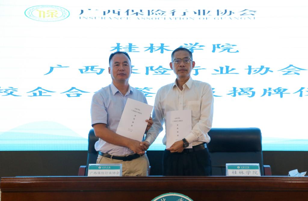 会上,校长杨树喆与广西保险行业协会专职副会长蒋光湘签署校企合作框架协议,并共同揭牌。