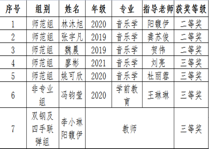 获奖师生一览表