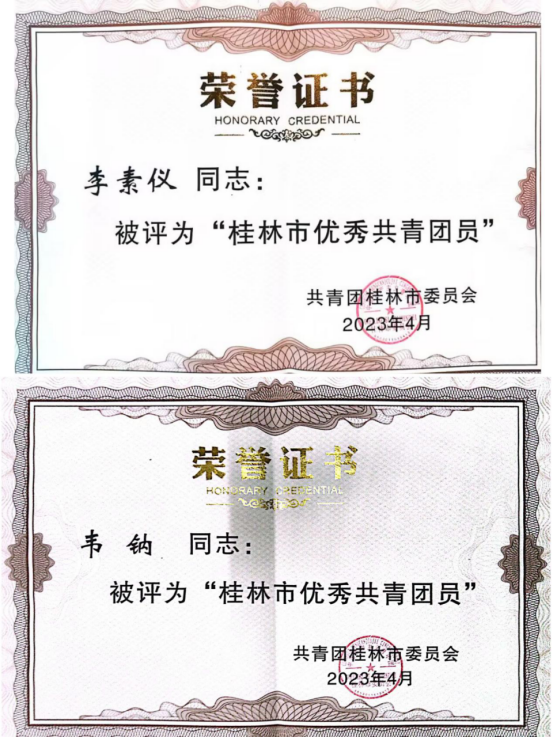 我校李素仪、韦钠两名同学荣获“桂林市优秀共青团员”荣誉称号