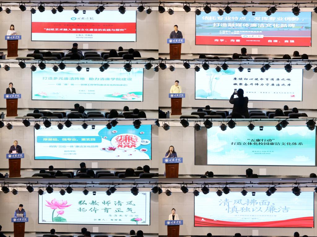 接着,八个二级学院党总支通过图文并茂的方式,就本单位2022年“崇廉向善”廉洁文化“一院一品”培育项目进行了展示。
