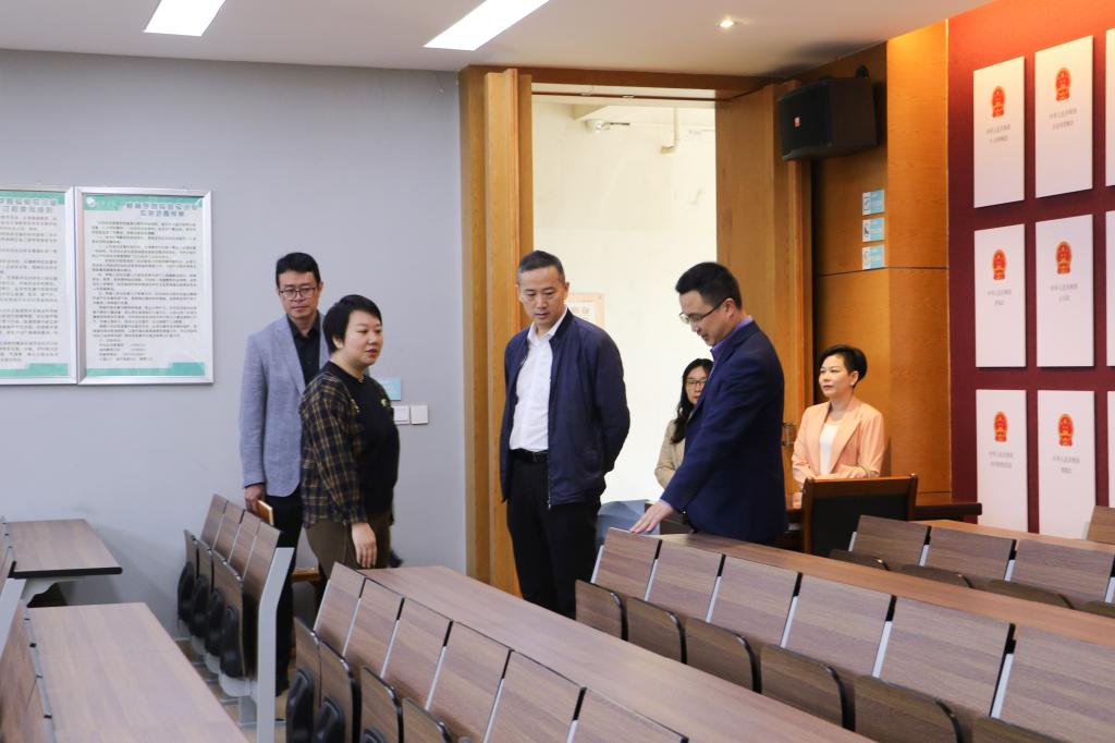 座谈会后,陈礼兵一行在杨庆庆等陪同下,先后实地考察了我校“红湾”主题阅读区、党建文化长廊、智慧教室、模拟法庭实训中心、至善讲堂、弘善讲堂等教学场所,认真听取相关情况介绍,与有关负责同志深入交流。
