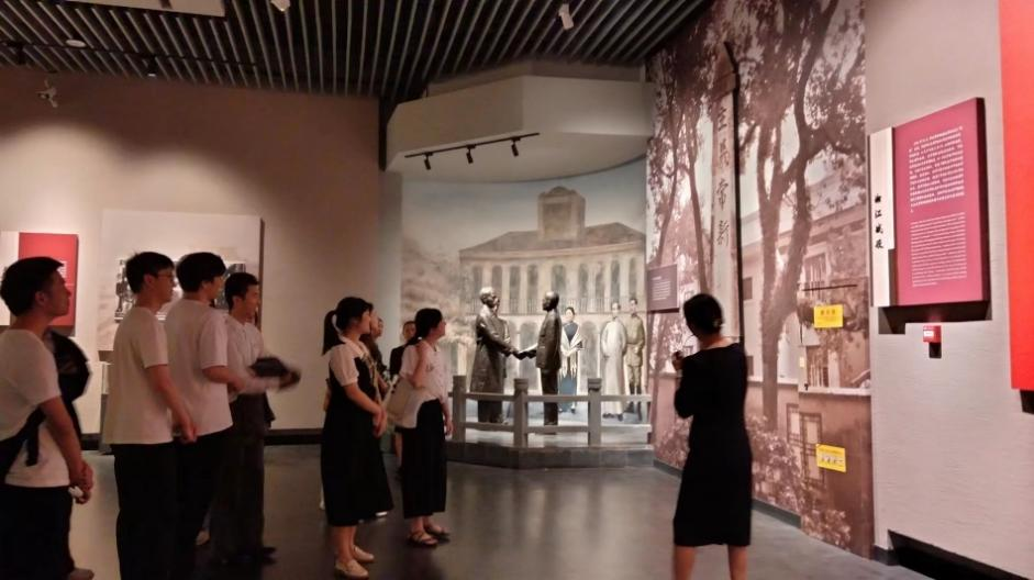 桂林抗战文化讲座上,博物馆副研究馆员龙文勤就“永远的旗帜——桂林抗战文化名人专题陈列”展览内容,从名人事迹和名家作品两方面阐述桂林城的红色血脉和历史文化意义。研学活动环节,博物馆员带领我校师生参观《漓水春秋》展厅。通过讲解,同学们在历史文物的古今变换中了解并学习“桂学”,品味桂林深厚的历史文化底蕴和红色文化基因。