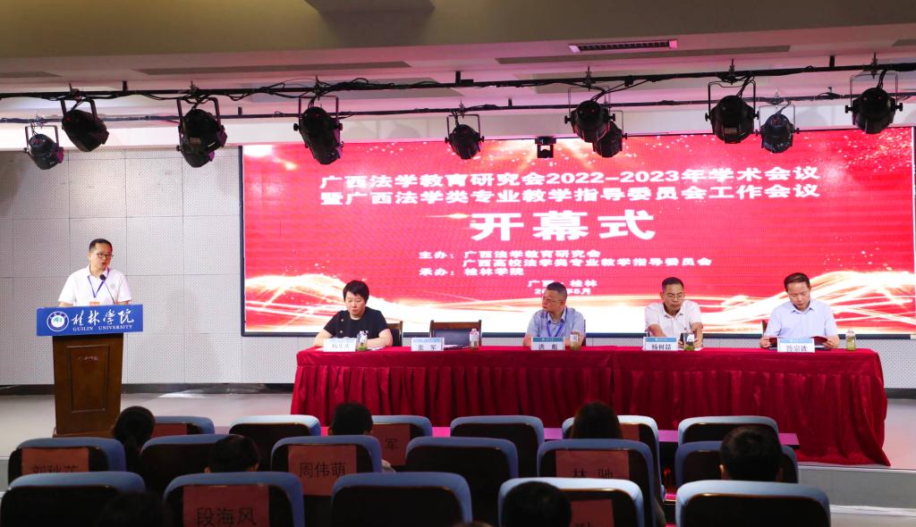 5月20日至21日,由广西法学教育研究会、广西法学类专业教学指导委员会主办,我校金融与法律学院承办的广西法学教育研究会2022-2023年学术会议暨广西法学类本科专业教学指导委员会工作会议在我校召开。会议主题是“贯彻党的二十大精神,开创广西法学教育新局面”。广西警察学院党委副书记、院长,广西法学类专业教学指导委员会主任委员张军,广西壮族自治区法学会党组成员、副会长洪彪,广西法学教育研究会会长、广西师范大学法学院院长陈宗波,我校董事、校长杨树喆出席开幕式并分别致辞。广西法学类本科专业教学指导委员会委员,广西法学教育研究会会员代表,广西相关高校法学院院长、法学学科专业负责人及师生代表近两百人参加会议。开幕式由我校副校长杨庆庆主持。