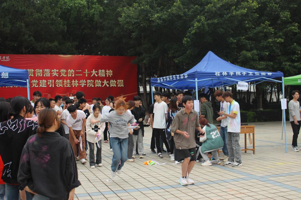 本次“奔跑吧·桂院青年”校庆日环校跑活动以环校跑为主线,在学校三个广场分别设置了“爱随风飘满桂院”、“校史校情你问我答”、“花样贺校庆”打卡点。在至善广场“爱随风飘满桂院”打卡点,同学们需在祝福卡片上写下对桂院的深深祝福以及对桂院美好未来的展望,营造出热烈欢快的活动氛围。乐善广场打卡点设置了“校史校情你问我答”环节,考验同学们对校史校情的掌握程度,有的同学还在奋力思考,有的同学已顺利盖下此章,每位同学任务进度不一,比赛进行的如火如荼。