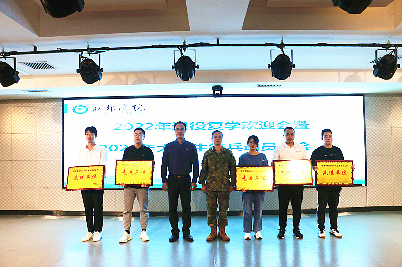 为深入学习贯彻党的二十大精神和习近平强军思想,增强我校学生的国防教育观念,5月25日下午,我校在至善讲堂召开2022年退役复学学生欢迎会暨2023年大学生征兵动员会。校党委副书记、纪委书记、副校长邓志平出席会议,学生事务处(部)主要负责人及相关人员,各二级学院分管学生工作副书记、全体辅导员、2022年退役复学学生、学生代表参加会议。会议特邀桂林市雁山区人民武装部副部长雷琳作动员宣讲。