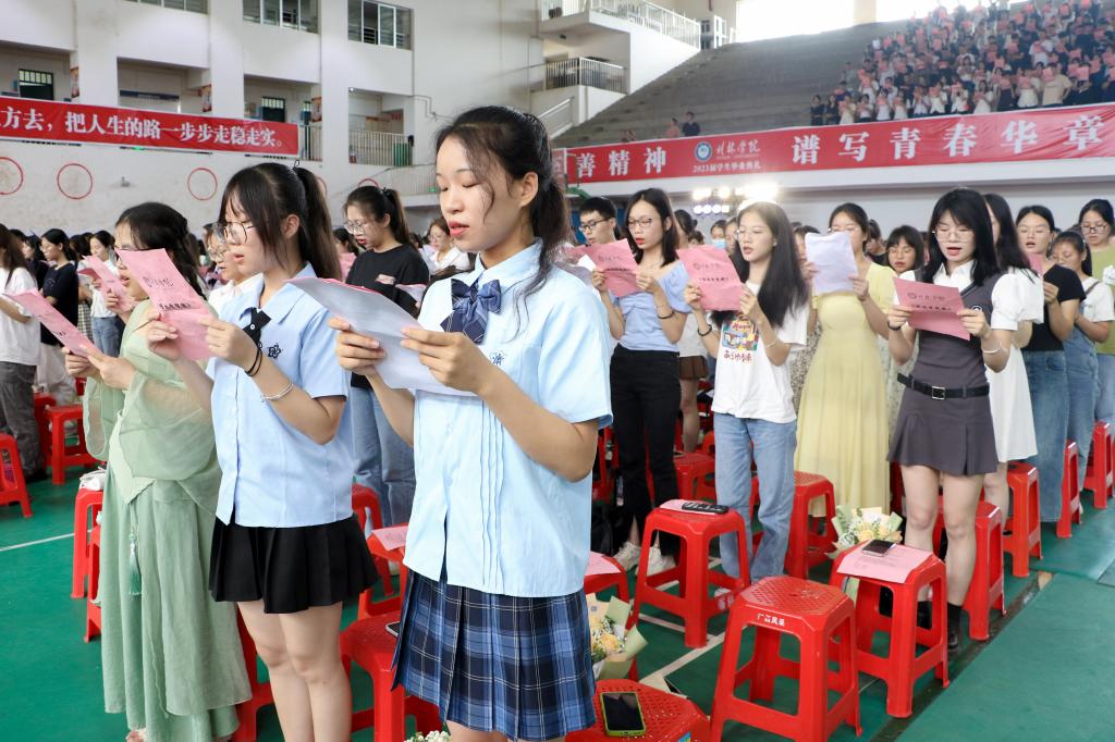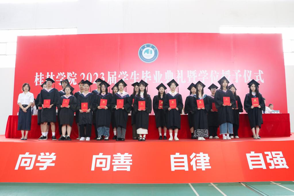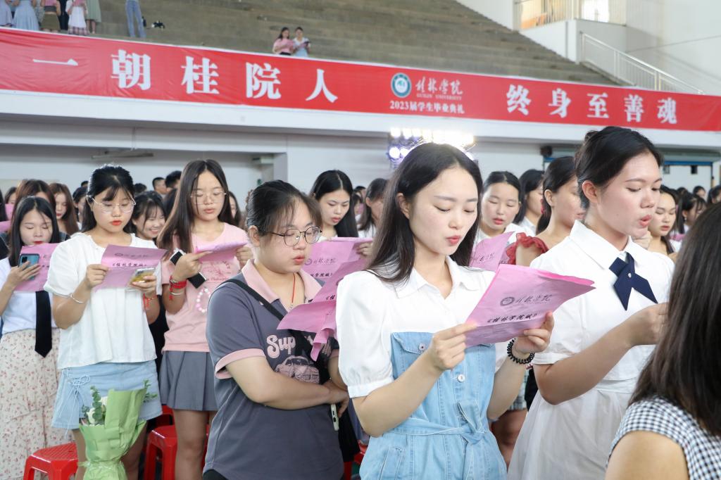 毕业典礼在全体师生声情并茂的《桂林学院赋》诵读声中达到高潮,并在悠扬的《造就人才的殿堂》校歌声中落下帷幕。