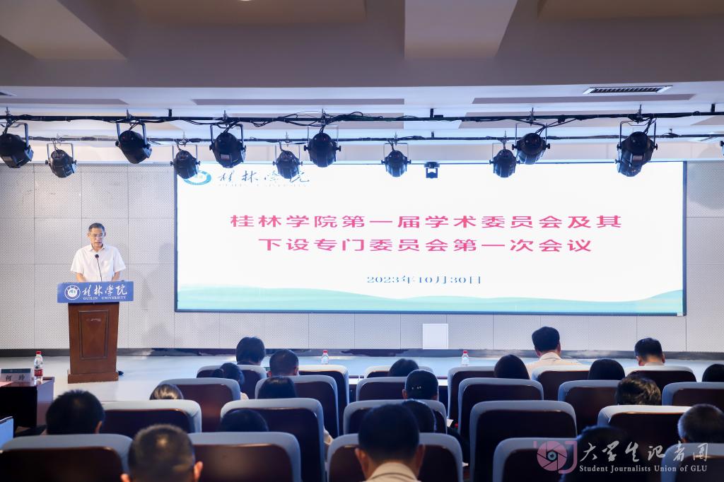 会上,校长杨树喆简要介绍了第一届学术委员会及其下设专门委员会委员的产生过程,并领学了《桂林学院学术委员会章程(2023年本)》《桂林学院教学指导专门委员会章程(2023年本)》《桂林学院职称评审(认定)推荐)专门委员会章程(2023年本)》《桂林学院学位评定专门委员会章程(2023年本)》等4份章程文件。他指出,校学术委员会是学校“实行董事会领导下的校长负责制”内部治理体系框架内的最高学术机构,统筹行使学术事务的决策、审议、评定和咨询等职权,在学科建设、学术评价、学术发展和学风建设等事项上的充分发挥作用。校学术委员会下设教学指导专门委员会、职称评审(认定)推荐专门委员会、学位评定专门委员会等3个专门委员会,分别具体承担相应职责和学术事务。他表示,学校高度重视第一届学术委员会及其下设专门委员会的筹备工作,在今年暑期“高素质干部推进高品质办学”(百色干部学院)专题研修班上专门安排了对《桂林学院学术委员会章程(2023年本)》等4份文件的集中征求意见,后经2023年秋季学期第3次校长办公会议审议通过并印发施行。他强调,各位新当选的委员,要充分认识校学术委员会及其下设3个专门委员会的重要意义,切实发挥学术委员会及其下设3个专门委员会在学校建设中的重要作用,必须要加强自身建设,提高履职能力,增强政治意识,注重学习研究,树立法治思维,依法依规行使职权。