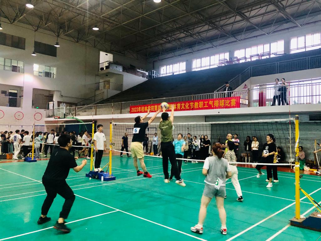 本次比赛为男女混合队赛制,共分两个阶段,第一阶段为小组循环赛,第二阶段为交叉淘汰赛。来自全校16支代表队参加比赛,讲台上,他们是教育事业的先锋,诲人不倦;球场上,他们是奋勇拼搏的赛者,勇争第一。竞赛中的发球、接球、一传、二传、扣球等环节衔接有序,精彩纷呈,既有激烈的攻守,又有互相的包容,欢快而精彩的竞赛场面给现场观众留下了深刻的印象。