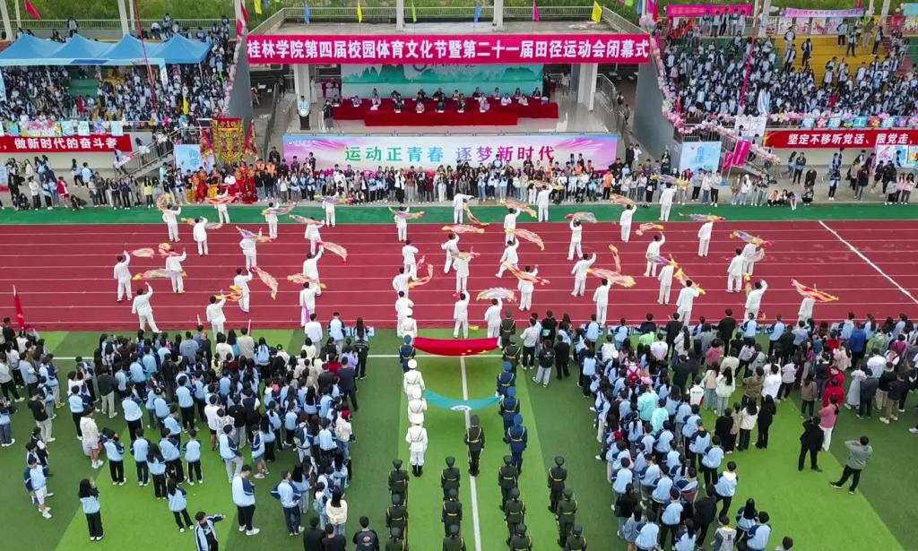 校党委副书记、纪委书记、副校长、体委主任邓志平致闭幕词并宣布第二十一届田径运动会闭幕。他首先代表学校向为本次田径运动会作出积极贡献的各位裁判员、工作人员、志愿者们表示感谢,向勇于参与、顽强拼搏、获得各项荣誉和优异成绩的团体和个人表示祝贺。他表示,本届田径运动会的成功举办,充分展示了我校体育工作的丰硕成果,展示了学校体育事业发展成就,展现了广大师生体育运动的风采,为推动我校群众性体育运动和竞技体育的发展谱写了新的篇章。希望广大师生继续汲取体育精神,把本届校园体育文化节中焕发出的竞赛的激情、拼搏的勇气、收获的喜悦融入日常学习、生活,牢固树立“健康体育、快乐体育、终身体育”的理念,为促进桂林学院高质量发展作出自己的贡献。