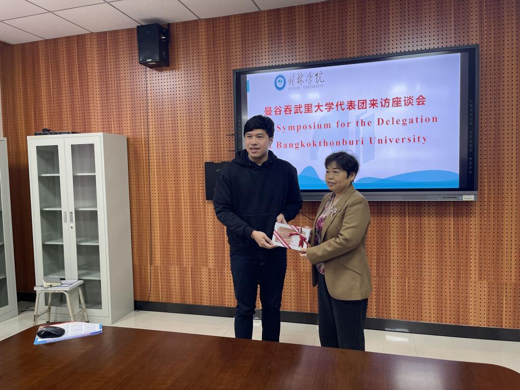 会上,何玲副校长对黄碧泰一行的到访表示诚挚欢迎,并介绍了学校的专业特色、师资队伍、人才培养、海外留学等基本情况。她表示,学校始终坚持对开外放办学,持续探索和创新对外交流合作的新途径。此次曼谷吞武里大学到访,不仅给桂林学院提供了机遇,还将为广大师生搭建更大的平台,进一步丰富我校与“一带一路”沿线国家间的教育合作。期待双方在国际化人才培养方面建立友好关系,深入探讨开展更多元、更深层次的务实合作。