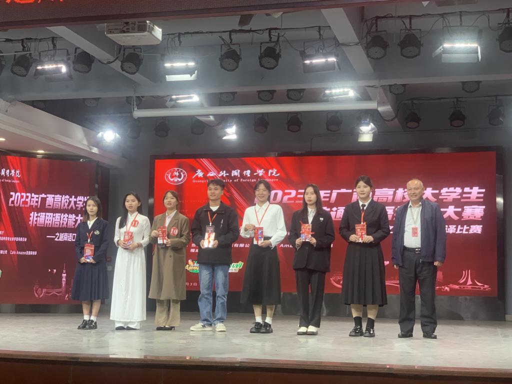 我校学子在老师们的指导下表现出色,经过激烈角逐,凭借扎实的基础和过硬的外语水平,越南语专业学生杨柳结获二等奖,韦雪清获三等奖;泰语专业学生邓艳云、邓伊曼获三等奖。