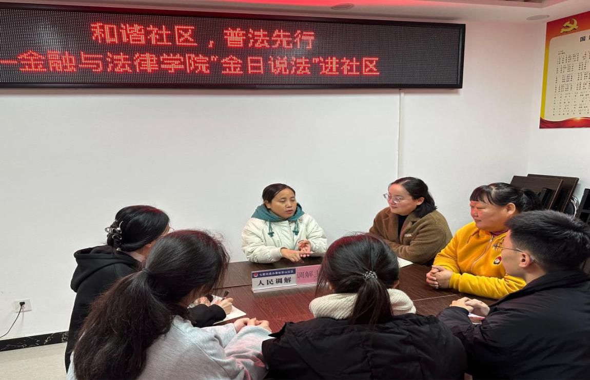 金融与法律学院与桂林市法律志愿者协会开展各种形式的法律志愿服务,并逐步形成以党建为引领,结合《社区法》课程教学实践的“金日说法”品牌活动。该活动,组织师生进社区,普及法律知识,提供法律咨询服务,同时在校园内,宣传金融和法律知识,提高学生金融安全意识。学生通过系列志愿服务,在老师们的指导下,真正做到了将理论知识和实践结合起来,进一步增强了学生学习的积极性和主动性。