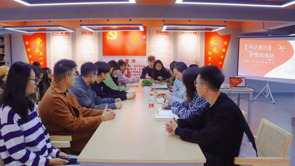 传媒与新闻学院积极探索“党建+学风建设”育人模式,将学风建设机制融入基层党建活动,使大学生党建在学风建设中充分发挥作用。通过开展“书记有约”系列活动,与学生共话青春、共描梦想,培育“志学”之风,引导学生树立远大理想和正确学习观;开展“信仰的回声”系列活动,在教学相长中提升专业技能,有效地促进党建与教学相融合。