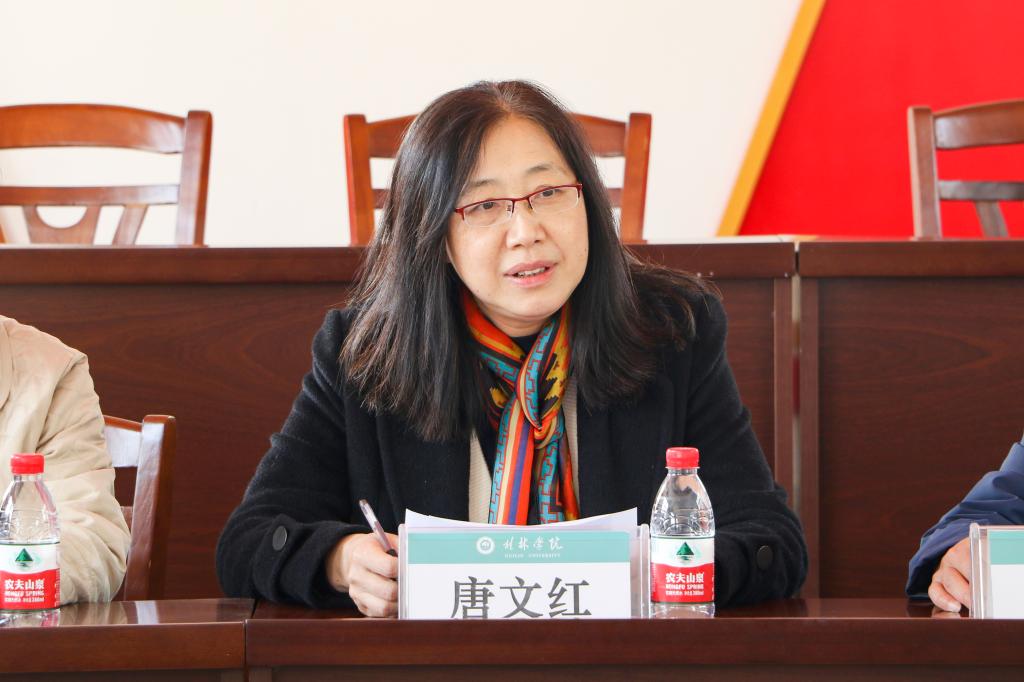 唐文红代表学校党委对草坪回族乡和潜经村支持学校发展表示感谢,肯定了学校统一战线队伍参与学校建设做出的积极贡献。唐文红指出,本次活动既是铸牢中华民族共同体意识工作座谈会,又是“走出书斋,走向田野”,切实地感受乡村振兴战略的生动实践。唐文红强调,学校统一战线队伍,一是要进一步提高政治站位,深入学习贯彻习近平新时代中国特色社会主义思想,坚决拥护“两个确立”、坚决做到“两个维护”,确保新时代统一战线工作始终沿着正确方向坚定前行。二是要积极建言献策,立足工作岗位,提高履职本领,增强责任担当,发挥自身的资源和优势,为做大做强桂林学院贡献力量。三是要聚焦国家战略,发挥才智和专业优势,在服务桂林世界级旅游城市建设中贡献力量。