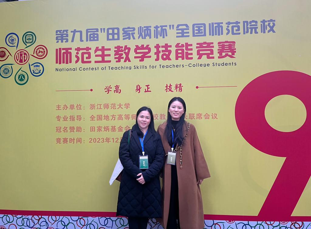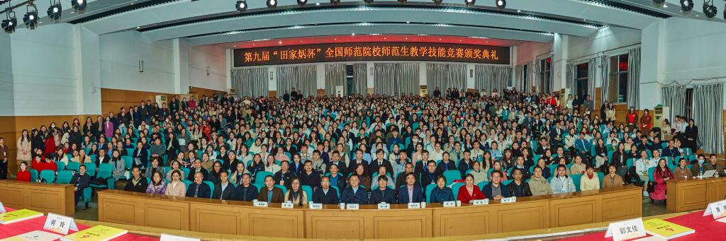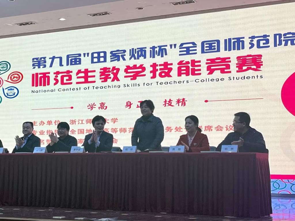 2023年12月31日,第九届“田家炳杯”全国师范院校师范生教学技能竞赛(决赛)于浙江师范大学落下帷幕。本项比赛由全国地方高等师范院校教务处长联席会议提供专业指导,浙江师范大学主办,是目前国内影响力最大、参与院校最多、参赛水平最高的师范生教学技能竞赛。评审专家均由组委会从全国专家库中遴选(每学科5人)有造诣、有声望的教授担任。我校副校长何玲受邀担任决赛评委,并在颁奖典礼上为获得一等奖、二等奖选手颁奖。我校学子系首次参加此项比赛,汉语言文学专业张桂翠获一等奖,英语专业李珊、数学与应用数学专业经紫云获三等奖。