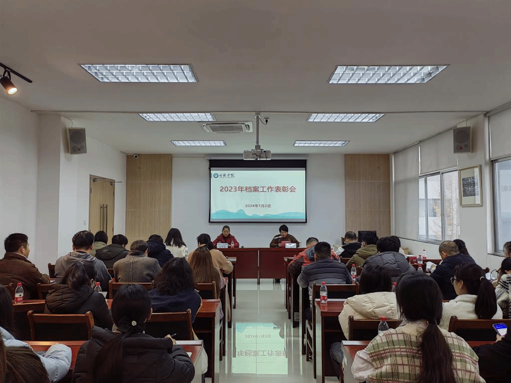 1月2日下午,学校在图书馆C馆三楼报告厅召开2023年档案工作表彰大会。副校长杨庆庆出席会议,学校档案工作领导小组全体成员、各单位兼职档案员、图文信息中心(档案馆)全体成员共45人参加了会议。