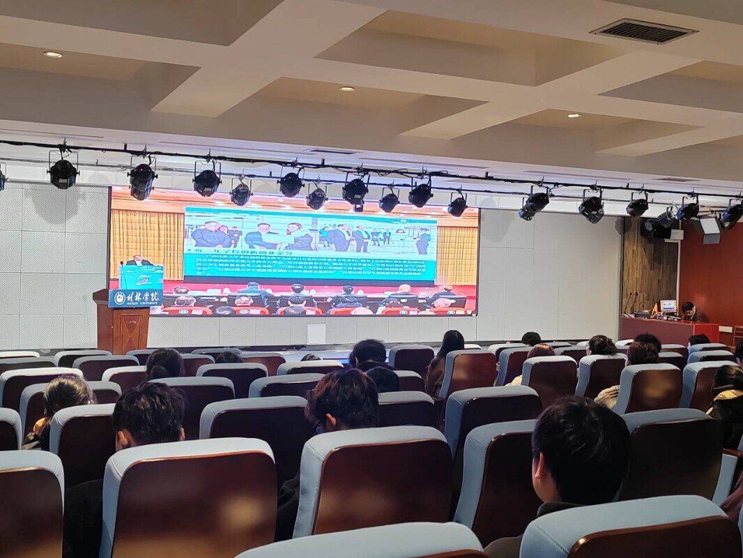 为总结第九届中国国际“互联网+”大学生创新创业大赛广西赛区选拔赛相关工作,部署2024年中国国际大学生创新大赛广西赛区选拔赛工作,1月5日,第九届中国国际“互联网+”大学生创新创业大赛广西赛区选拔赛总结会暨2024年区赛工作布置会在广西科技大学召开。自治区教育厅高教处处长、学位管理与研究生教育处处长、自治区学位委员会办公室主任傅源方,广西科技大学党委书记赵君出席会议。本次会议采取线上线下相结合的形式开展,各主办单位、冠名单位、协办单位、技术支持单位有关负责人及77所区内院校领导、师生代表约170多人在主会场参加会议,全区各普通本科高校、职业院校、各设区市教育局设分会场同步直播。广西科技大学党委常委、副校长秦小云主持会议。我校副校长兼创新创业学院院长何玲教授出席本次会议。我校分会场视频会在至善讲堂举行,创新创业学院、教务与产教融合处、学生事务处(部)、校团委主要负责人,2023年参赛获区级奖项团队及指导教师、2024年拟参赛项目团队及指导老师参加视频会议。