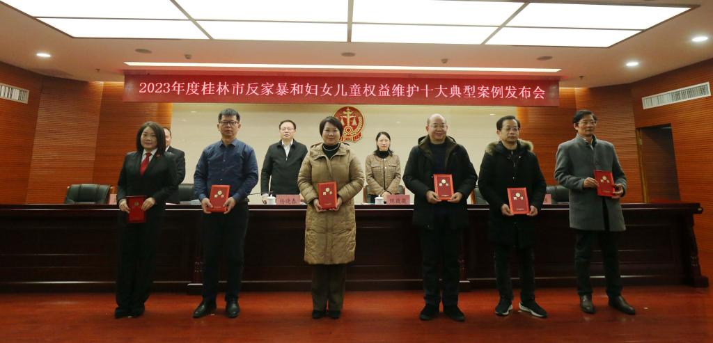 会上,市妇女联合会党组书记、主席陈薇薇通报了2023年桂林市反家暴联动机制工作情况。2023年,桂林市反家暴联动机制工作领导小组各成员单位深入学习贯彻习近平法治思想,依法履职,齐抓共管共治,扎实开展排查化解婚姻家庭矛盾纠纷。2023年,排查婚姻家庭纠纷案1774件,化解1774件。大力推进反家庭暴力法进家庭、进学校、进农村、进社区,反家暴法治意识不断强化。加大对家暴受害人的庇护和救助力度,积极为受害人提供司法求助、医疗救助、纠纷调解、法律援助、心理康复等服务,家暴受害人维权服务更趋完善。市中级人民法院党组成员、副院长黄强发布了2023年度桂林市反家庭暴力和维护妇女儿童权益的十个典型案例。与会领导为杨庆庆副校长颁发了桂林第二届婚姻家庭纠纷调解专家库专家聘书。