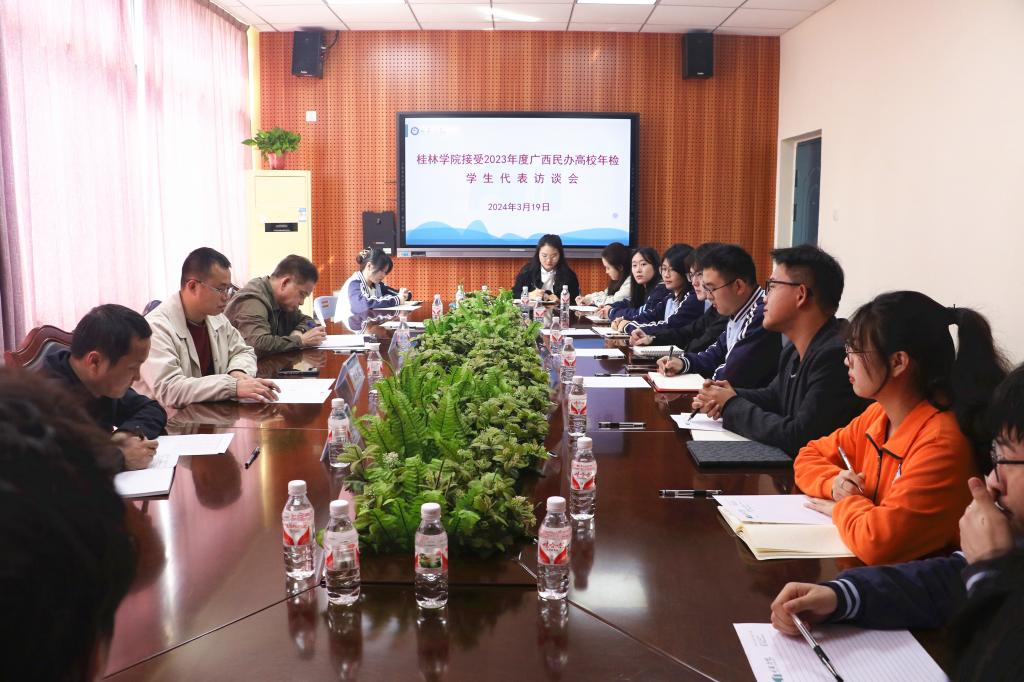 专家组对照《广西壮族自治区民办高等学校年度检查办法(2022年修订)》,逐条逐项对我校的年检支撑材料进行了仔细检查,就有关问题与我校相关部门负责人进行了交流,并分别召开了教职工、学生代表访谈会,听取师生对学校办学工作的意见和建议。