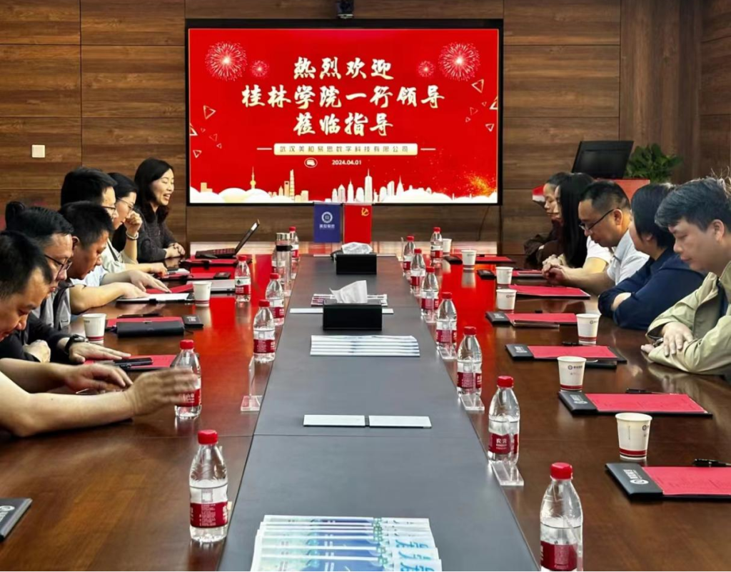 为进一步加强校企合作,拓宽毕业生就业渠道,深入了解行业需求,推动产教融合,提升教育质量监控水平,共同推动数字经济的高质量发展,提升人才培养质量。4月1日,学校副校长杨庆庆、蒋毅带领学校办公室、财务处、发展与质量评估处、人力资源处(部)、学生事务处(部)、资产与设备管理处、图文信息中心等相关负责人赴武汉美和易思数字科技有限公司开展访企拓岗。